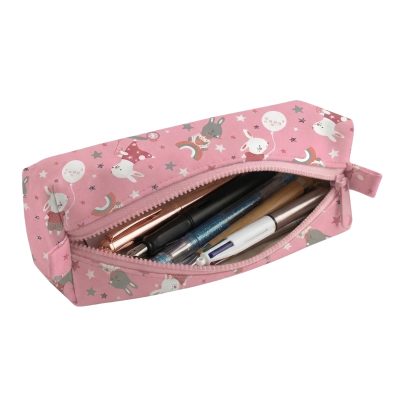 El estuche escolar de SticTag combina 100% algodón con estampados exclusivos y el nombre de tu hijo bordado a mano. Diseñado con un compartimento único y cremallera resistente, tiene el tamaño justo para los lápices, pinturas y rotuladores del cole.